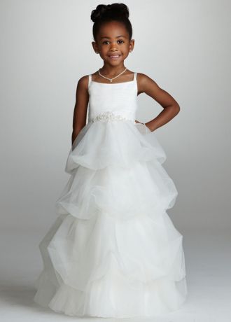- Stunning floor length spaghetti strap tulle ballgown features chic bubble tiered skirt and sparkling beading at the waist.