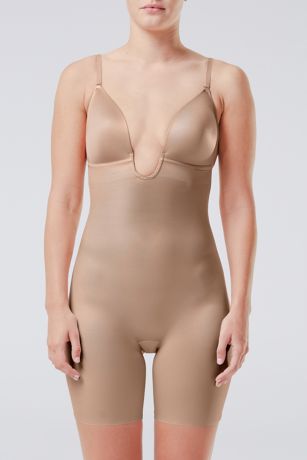 With a plunging front and low back, this long-leg shaping body suit slips under your most daring looks unnoticed. Features light padding, maximum shaping support, and clean-edged leg openings for invisibility beneath clothes.