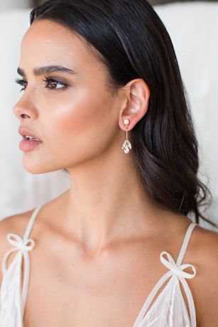An opal or Swarovski crystal bloom hangs from a slender strand on this pair of handmade post earrings.