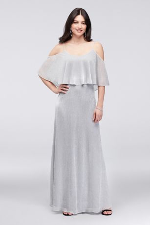 This flowy A-line dress is crafted of a shimmery soft metallic fabric for maximum sparkle. An off-the-shoulder flounce completes the bohemian-glam look.