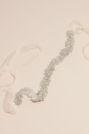 Add a garden-inspired vibe to your wedding dress with this ribbon-tied sash, featuring a row of shimmery, shiny rhinestone flowers.