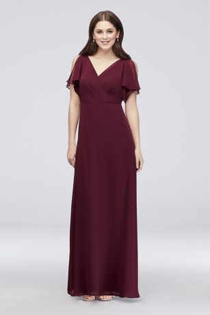 Flowy split sleeves and a draped surplice bodice top this easy-to-wear long chiffon bridesmaid dress.