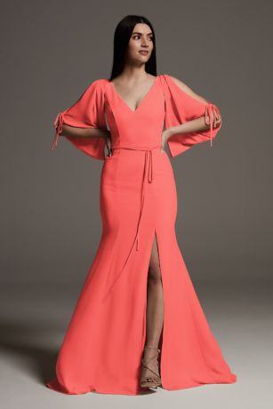 Split Sleeve Crepe Bridesmaid Dress with Slit