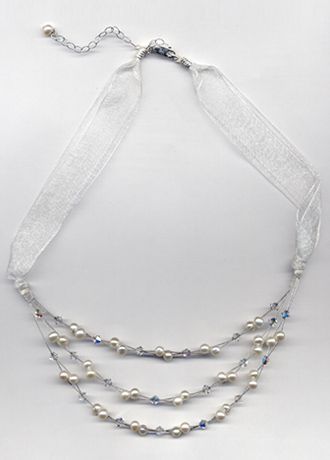 Add a lustrous beauty to your look. This multi layered necklace is strung with freshwater pearls and Swarovski crystals. Delicate and beautiful you'll look on your special day. This necklace measures 16" in length with a 3" extender allowing you to wear it at different lengths on the neckline. Necklace shipped with a pouch for gift giving.