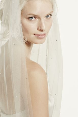 - Adorned with Swarovski crystals, this veil is the definition of romantic.