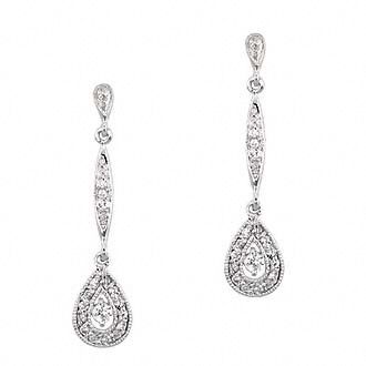 This art deco cz earring has the look of an era gone by. It's simplicity is just stunning. Each earring measures 1 3/8" in length. Total carat weight is .44TCW with a post and butterfly clutch for pierced ears only. They are shipped in a white leatherette box perfect for gift giving.
