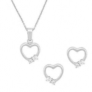 What a charming set for your flower girl. She'll wear this after the wedding and for many years. The heart pendant has 2 cz stones set on the bottom. Pendant comes with a 15" chain. Earrimg are hearts with two cz stones that match the pendant. These are for pierced ears only.