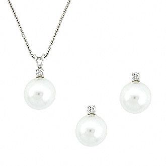 Sterling Silver Pearl CZ Set