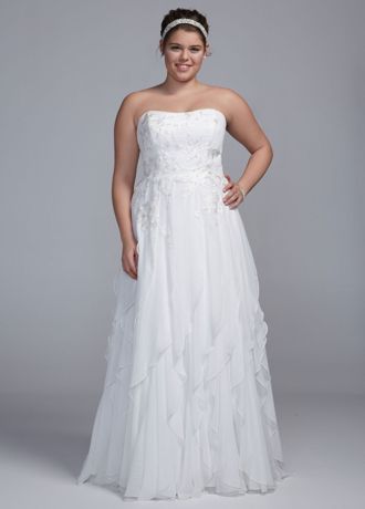 Strapless A Line Chiffon Gown with Ruffle Skirt