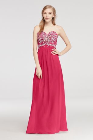 Stay on top of this season's color trend in this bold fuchsia strapless prom dress! Featuring a beaded bodice, sweetheart neckline, and tie back this dress will meet all of your style requirements!