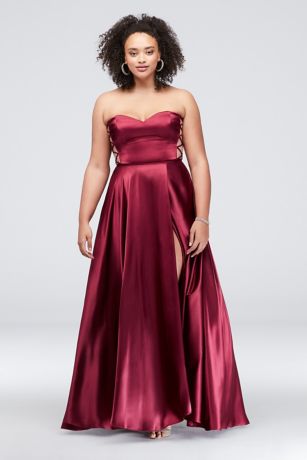 A little bit sweet and a little bit sexy, this charmeuse A-line dress features a sweetheart strapless neckline and strappy lattice side panels.