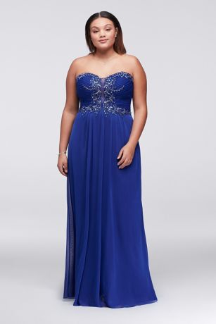 Strapless Chiffon Long Dress with Beaded Bodice