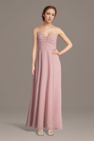 Airy chiffon gives this strapless A-line dress a soft, graceful flow, while the structured notch neckline adds a touch of modern sophistication. Perfect for bridesmaids or any big event.