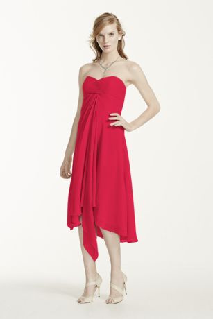 This short dress will make an entrance at any event. Designed in a comfortably flowing chiffon fabric, the ruched bust and front detail will flatter every figure. The asymmetrical hem adds to the modern wear-again styling.