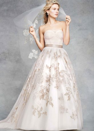 - Tulle skirt features flawless vintage-inspired antique rose applique detail for a unique and breathtaking look.