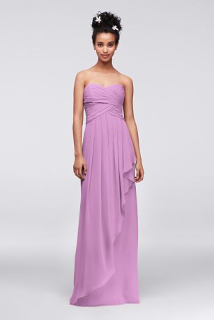 Simply stunning, your bridal party is sure to look flawless in this strapless crinkle chiffon dress. The bodice features a sweetheart neckline and ruched detail, as the cascade skirt adds drama and movement.