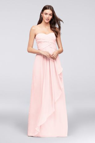 Simply stunning, your bridal party is sure to look flawless in this strapless crinkle chiffon dress. The bodice features a sweetheart neckline and ruched detail, as the cascade skirt adds drama and movement.