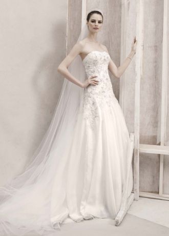 - Strapless bodice features delicately beaded drop waist highlighting an attention to detail.