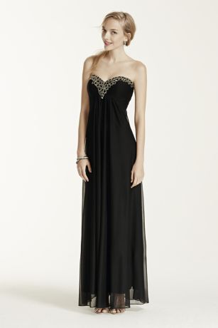 Strapless Empire Waist Dress with Beaded Bodice