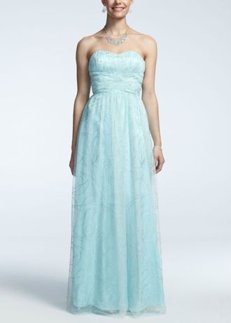 - Glittering mesh fabric flows out from an empire waist to form a long, glamorous ball gown.