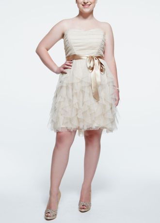 • Strapless bodice features flattering ruched bodice and stunning ribbon waist detail.