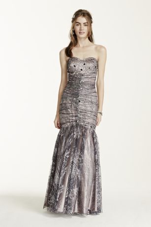 High shine and one of a kind! You'll steal the show at this year's Prom in this uniquely gorgeous fit and flare dress.
