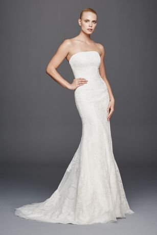 This strapless mermaid wedding dress has an amplified lace border and allover lace appliques inspired by an antique Victorian lace shawl found at the Portobello Road market in London. The lace and net were developed exclusively for the Truly Zac Posen collection. This gown encompasses rustic charm, antique refinement, and casual sophistication. Perfect for a garden, country, or beach wedding.