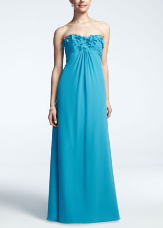 Strapless Long Chiffon Dress with Flower Detail