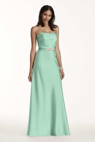 Strapless Long Satin Dress with Crystal Belt
