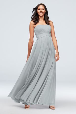 Mesh Cross Waist Strapless Bridesmaid Dress