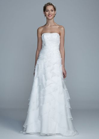 Strapless Organza A Line Gown with Tiered Skirt
