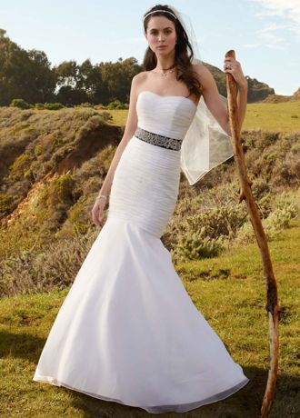 - Strapless fitted organza bodice features beautifully shirred bodice.
