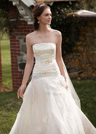 - Dropped waist ball gown with ruched bodice features a corset back for a gorgeous silhouette.