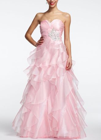 Strapless Organza Prom Ball Gown with Ruffles