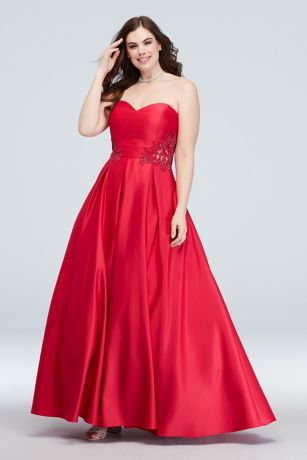 Strapless Satin Ball Gown with Waist Embellishment