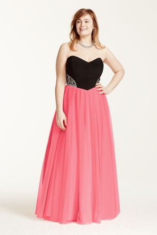 - Sleek, mesh skirt offers a chic take on the typical full ball gown.