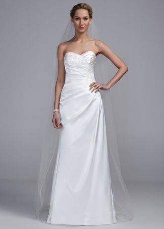 - Strapless sweetheart bodice features eye-catching and figure flattering pleated detail.