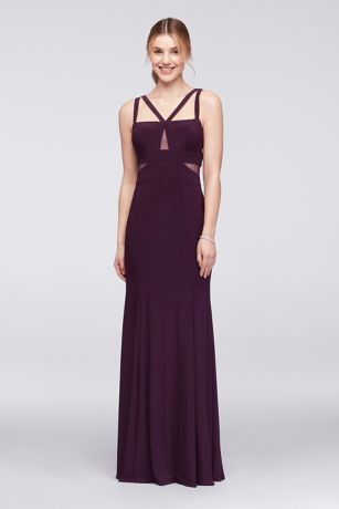Double straps and illusion cutouts form sophisticated angles on the bodice of this matte jersey column gown.