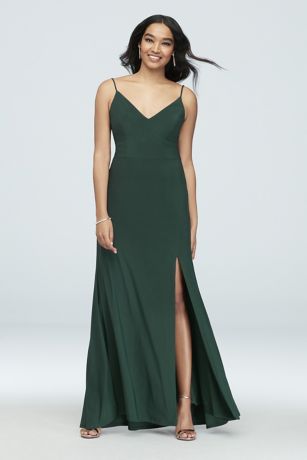 Stretch Jersey V-Neck Spaghetti Strap Gown