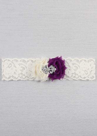 Decorated with two shabby chiffon flowers and finished with a sparkling rhinestone brooch, this delicate floral pattern stretch lace garter is a beautiful accessory to add to your wedding ensemble. Available in a selection of color combinations.