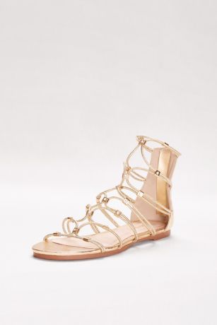 The stretchy straps of these metallic gladiators are studded with crystals.