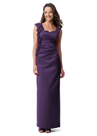 • Cap-sleeve bodice is accented with trendy chiffon ruffle on the right sleeve and features a sophisticated portrait neckline.