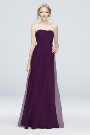 Personalize this tulle convertible bridesmaid dress with the skirt's six fabric ties: twist, braid, and knot them to change the neckline from halter to tank to one-shoulder.