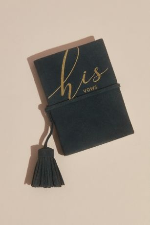 Write and share your unique vows in this suede, tasseled vow book, embellished with the metallic "his vows" message.