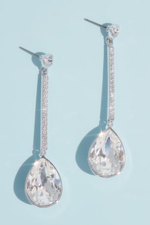 An elegant, pear-shaped Swarovski crystal dangles from a sparkling pave bar on these timeless earrings.