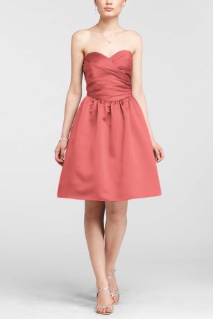 - Strapless satin ruched bodice with ultra-feminine sweetheart neckline.