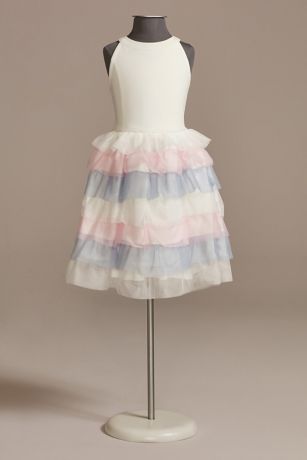Tank Flower Girl Dress with Tiered Mesh Skirt