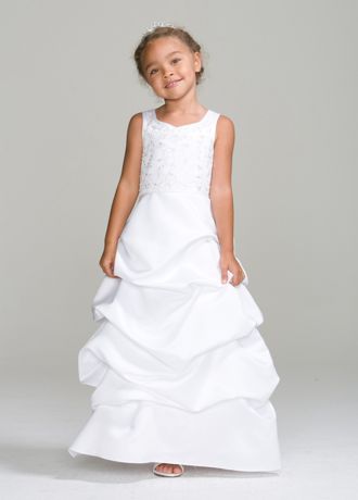 Tank satin bodice with beaded embroidery detail & full satin pickup full length skirt.