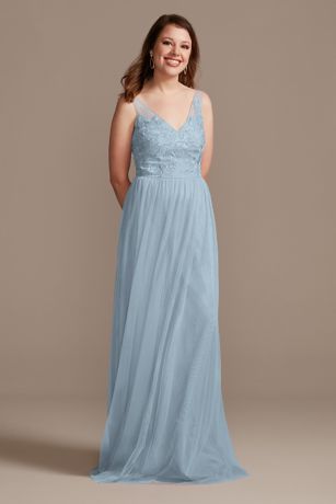 Tank V-Neck Embroidered Soft Net Bridesmaid Dress