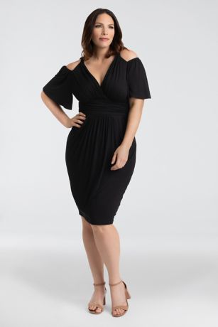 Complete with an on-trend cold-shoulder detail and chic twisted straps, this plus size sheath dress is just right for your next cocktail party or semi-formal event. Gathering at the bust and waistband highlight beautifully highlight your curves. Made exclusively for plus size figures.